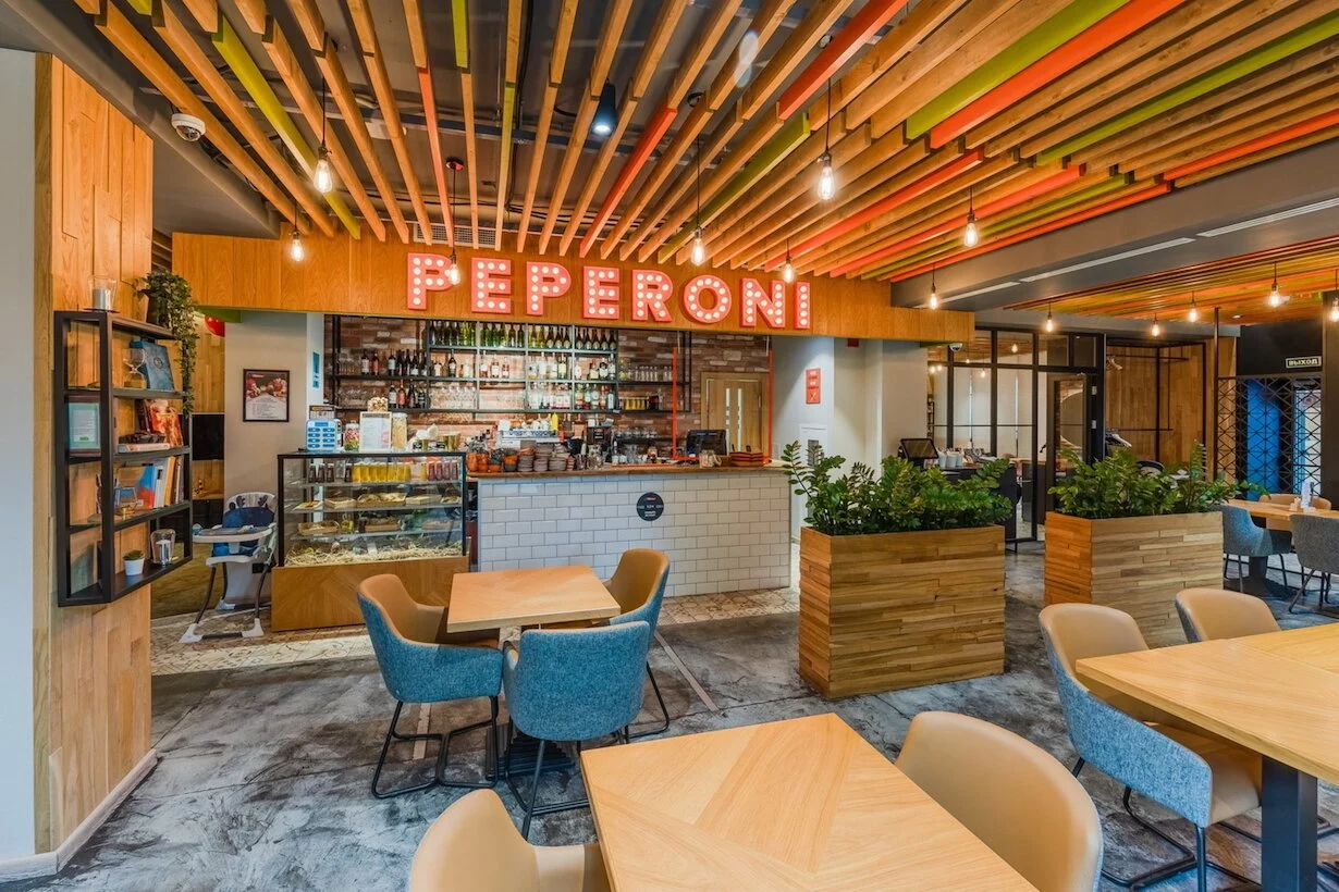 Peperoni — семейный ресторан на Фермском шоссе. Большую часть многостраничного меню в «Пепперони» занимают итальянские блюда. Особое внимание уделили домашней пасте и пицце. Всего в меню около 20 вариаций пиццы. Можно выбрать итальянскую с тонкой хрустящей корочкой или американскую с пышными воздушными бортиками. Еще в списке позиций есть блюда на мангале, стритфуд вроде бургеров с курицей или говядиной и японская классика — роллы и суши. По утрам кормят тостами и панкейками или комбо-завтраками, приготовленными на английский, французский или индийский лад. В будние дни в обеденное время в ресторане «Пепперони» можно заказать бизнес-ланч, его стоимость колеблется в районе 300-400 рублей.