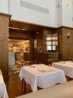 Светлый ресторан близ Исаакиевской площади. Сдержанный интерьер в духе классического Петербурга: нежные пастельные тона, венские стулья, множество монохромных фотографий петербургских достопримечательностей, стилизованные под старину светильники. В меню — блюда «дворянской» кухни по старинным рецептам и популярные русско-европейские позиции.