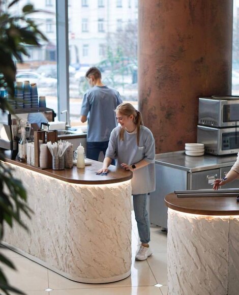 1. Чистота помещения: 9/10 — постоянно много неубранных столов.