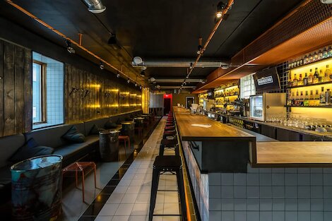 - Крафтовый бар с интерьером в стиле лофт и широким выбором напитков- Геологическая