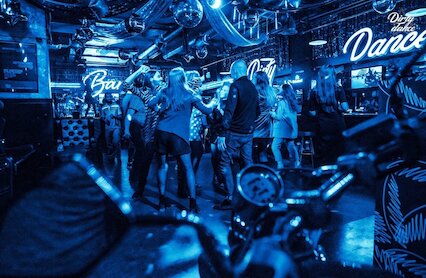 - Неоновый стриптиз-клуб с драйвовыми вечеринками и большой барной картой