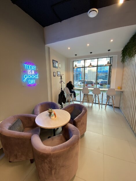- Светлая кофейня-корнер с ассортиментом небанальных напитков