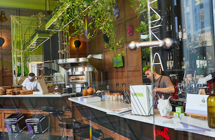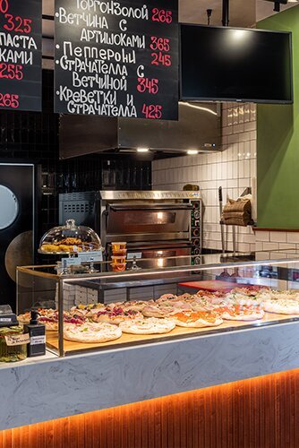 - Пиццерия в формате eat&go с лаконичным интерьером и римской пиццей