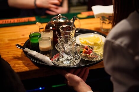 - Лаунж-бар с полноценной кухней и бестабачными паровыми коктейлями