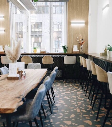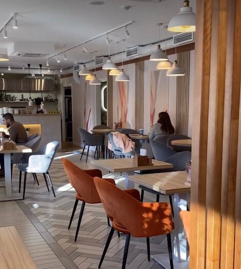 - Ресторан европейской кухни с атмосферным интерьером и акцентами на завтраки
