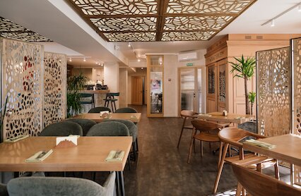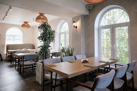 - Лаконичный городской ресторан европейской кухни при трехзвездочном отеле