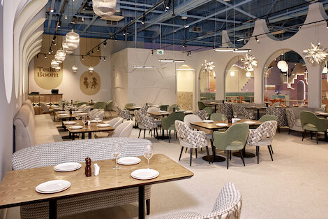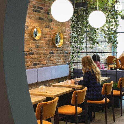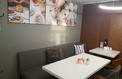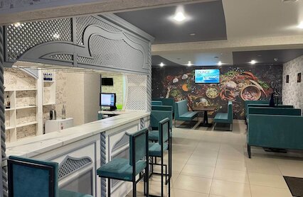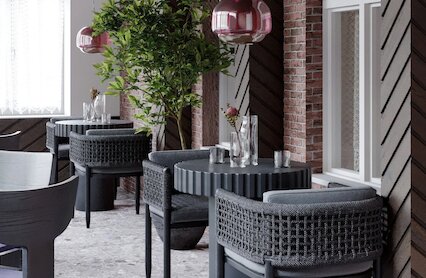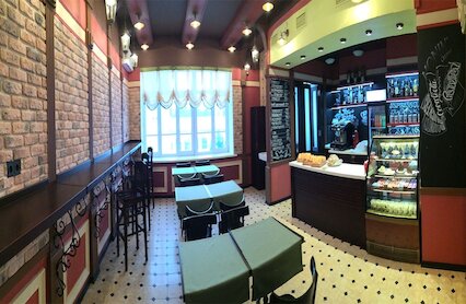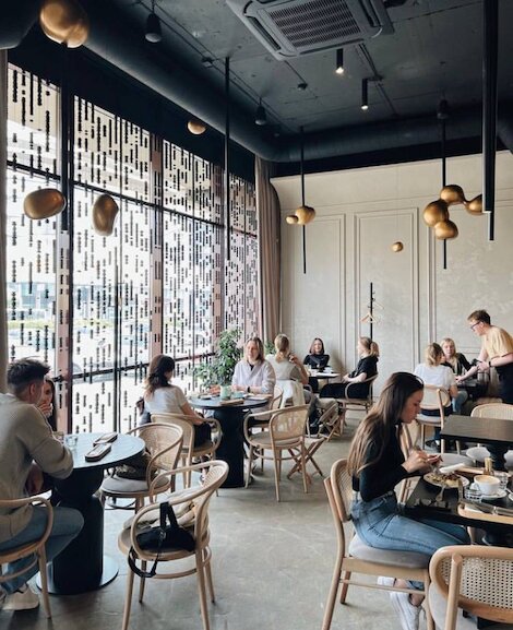 - Кафе европейской кухни со сдержанным интерьером