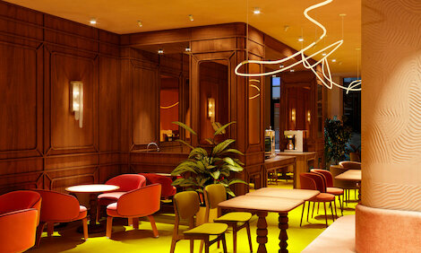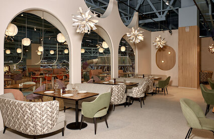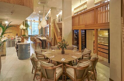 - Ресторан при отеле Four Elements с лаконичным интерьером и изысканным меню