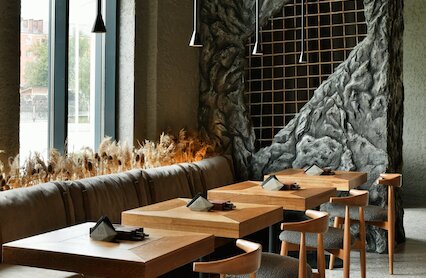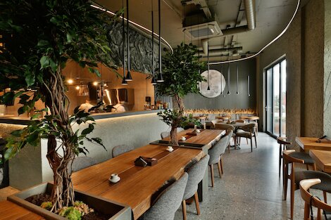 - Авторский гастробар с отсылками к морю и лесу с минималистичным интерьером