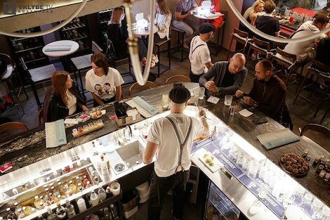 - Лаунж-бар в стиле индастриал с коктейлями и европейской кухней