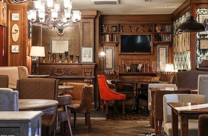 - Просторный пивной ресторан со спортивными трансляциями на территории отеля Crowne Plaza
