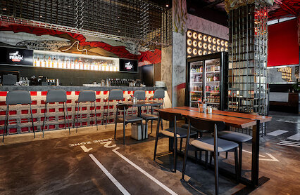 - Сетевой мясной ресторан с ярким интерьером и американской кухней