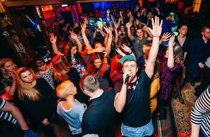 - Популярный сетевой караоке-бар с танцполом и широким меню