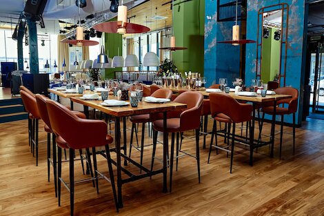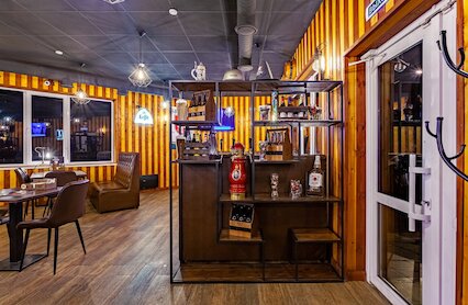 - Лаунж-бар в стиле индастриал с коктейлями и европейской кухней