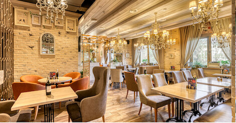 - Аристократичный двухэтажный ресторан с универсальным меню и винной картой в 1000+ бутылок