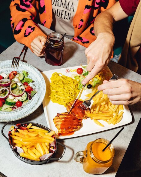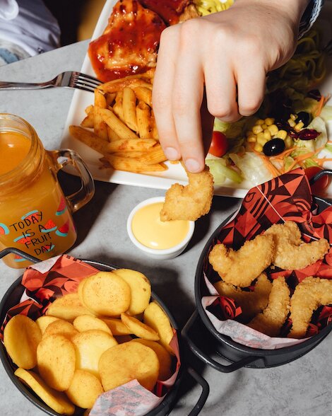 - просп. Победы 141, этаж 1Сетевое кафе с акцентом на блюда из курицы в ТЦ «Мега»