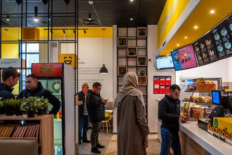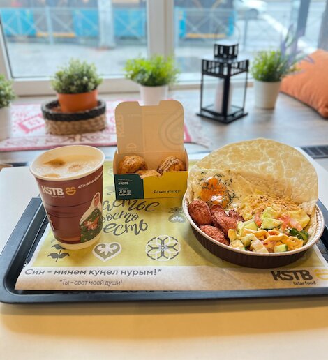 Зашли вдвоем вечером в субботу перекусить. Выбрали сет 3 (пельмени с бульоном, кыстыбый с картошкой фаршем, чай, и "минитреугольники со сгущенкой внутри и орешками- называется ичмасам). В районе 540 рублей, сет 4 (два манты, типа салата Цезаря, чай и губадия мини). Оператор парень спросил "чай с лимоном?". Попросили один с лимоном один без. Ждать пришлось не долго минут пять. Подача как в известных фастфудах, номер заказа - забираешь на подносе. За собой убираешь поднос. Столы диванчики и стулья кресла комфортные. Места были, в зале тишина, музыки не было. Может концепция такая.. Пельмени манты кыстыбый губадия горячие, достаточно вкусные салат свежий, все упаковано в бумажные стаканчики , коробочки, конвертики. На таре национальный характерный татарский орнамент и фразы на татарском с переводом на русский. Фразы о родном доме и теплые слова пожелания. Это приятно. А теперь полложки дегтя. Чай в сетах налит сразу готовый, это не чай а какой-то разведённый сто раз порошок чего-то но не чай, и даже лимон его не спасает а только усиливает неприятный вкус. И положили лимон в оба стакана чая. Просили только в один. Соответственно его посчитали два раза. Чек за два сета 1050 с копейками. Брали чай с ичмасам на Пушкина, там был пакетик чая запечатанный. Контролируешь процесс заваривания сам.
