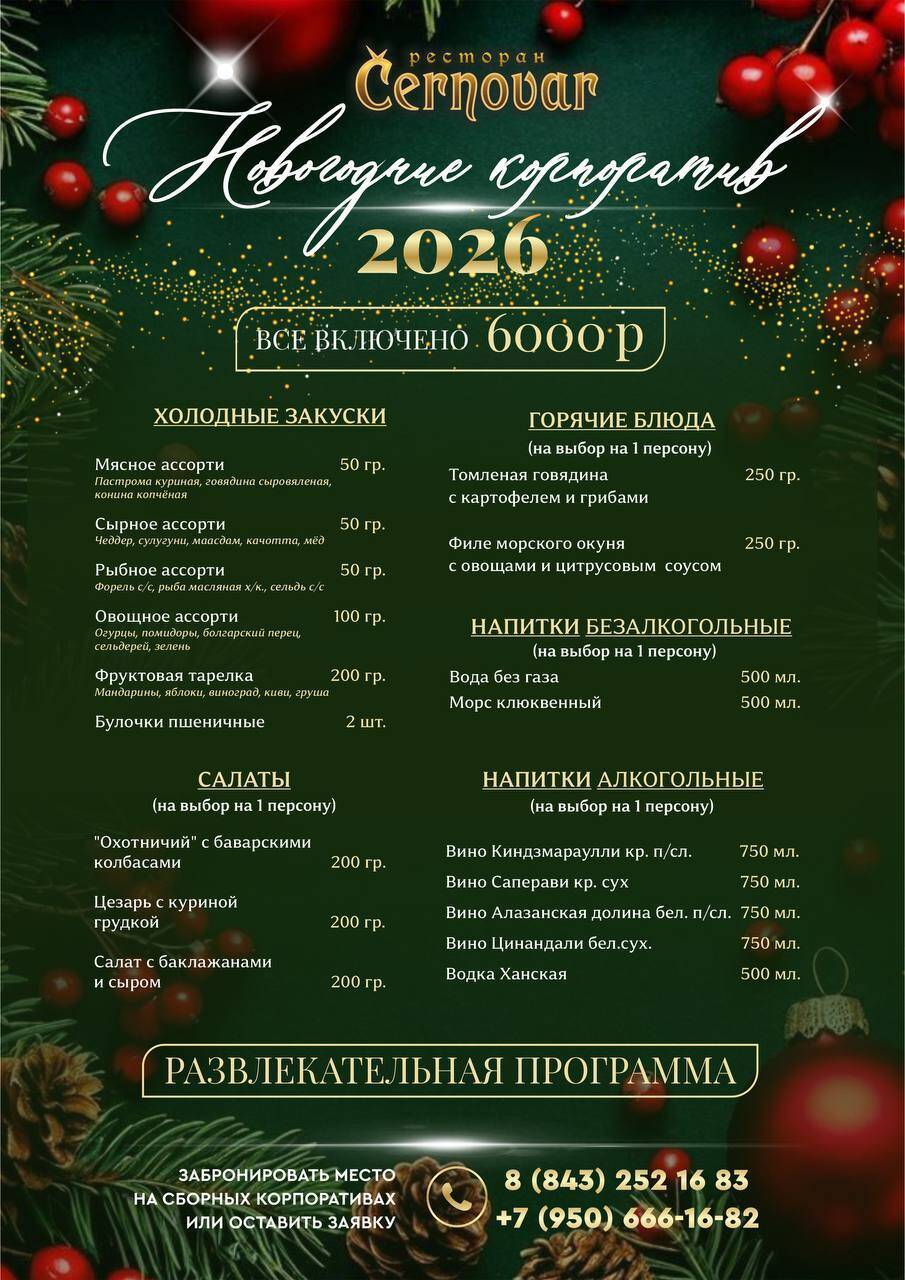 Не упустите возможность отпраздновать новогодний корпоратив в Cernovar и создать незабываемые воспоминания для всех участников!
