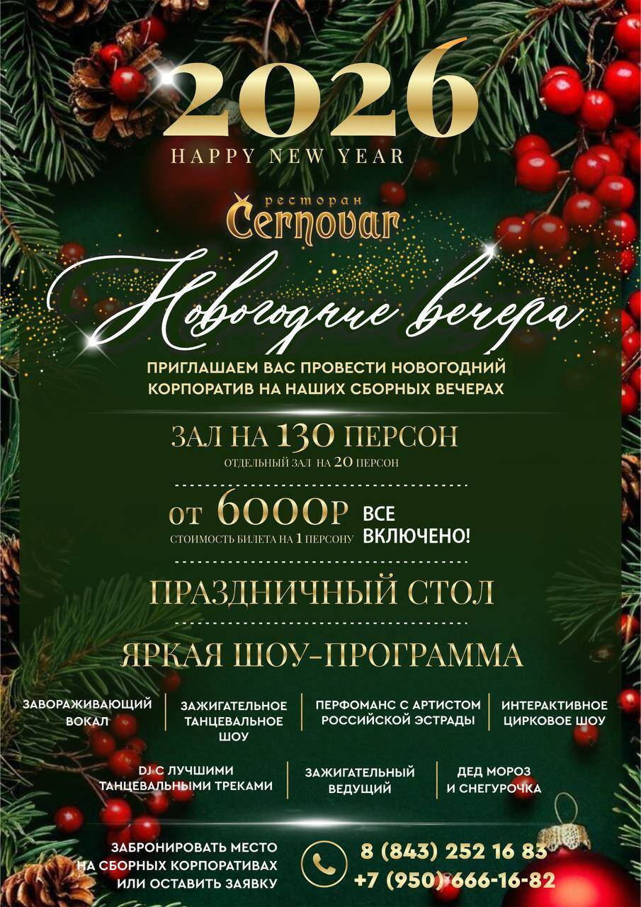 Приглашаем вас провести незабываемые новогодние корпоративные вечера в ресторане атмосферного чешского ресторана Cernovar, который находится в самом центре Казани!