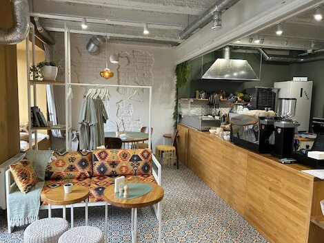 местоОлдэй завтраки, свежая выпечка и спешелти кофе в тихом дворике- Площадь Тукая