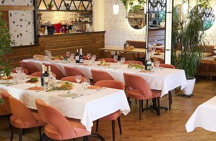 - Аккуратное итальянское кафе с акцентом на пиццу и пасту