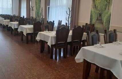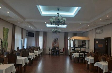 - Банкетный зал при одноимённом отеле со сдержанным интерьером и европейской кухней
