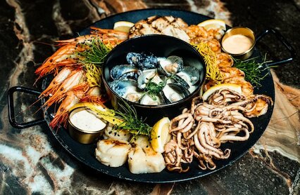 - Ресторан-лаунж с акцентом на морепродукты и видом на Казанский кремль
