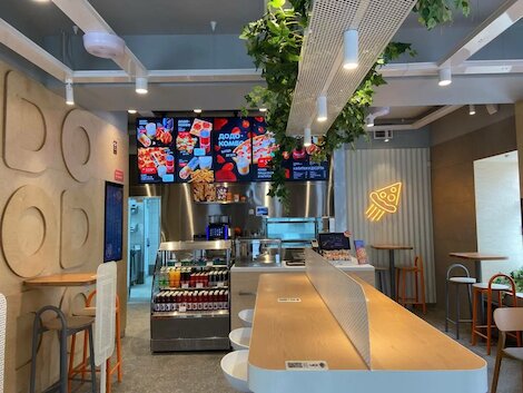- Демократичное камерное кафе с акцентом на пиццу и роллы