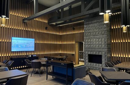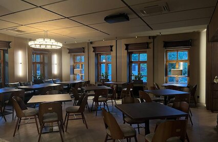 - Загородный ресторан в посёлке Дубровка со сдержанным интерьером и домашней кухней