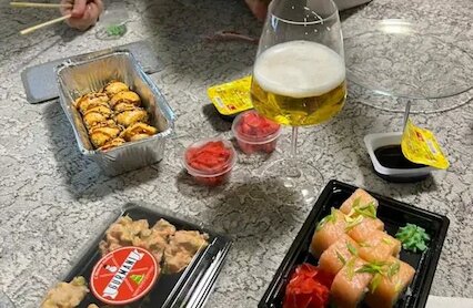 - Лаконичное кафе с собственной доставкой роллов и пиццы