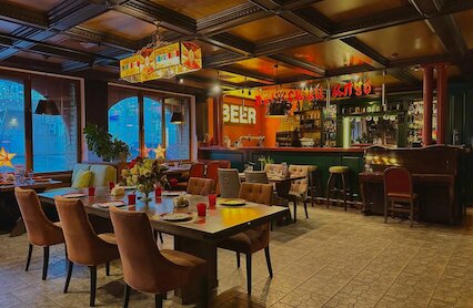 - Кафе с блюдами русской кухни и отсылками к СССР в деталях интерьера и плейлисте