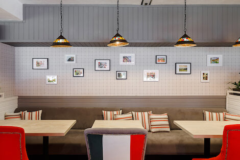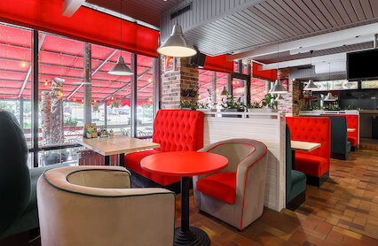 - Пиццерия с жизнерадостным интерьером и увлекательной детской комнатой- 1000