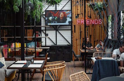 - Стильный ресторан с разносторонним меню, фотогеничными коктейлями и вечеринками по выходным