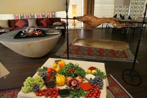 - Масштабный ресторан узбекской кухни с выдающимся камином-очагом и видом на озеро Кабан