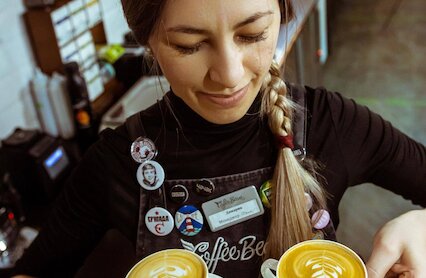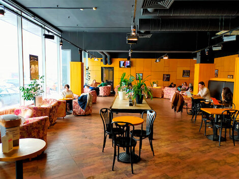 - Молодежная сетевая кофейня с внушительной коллекцией напитков и виниловым корнером