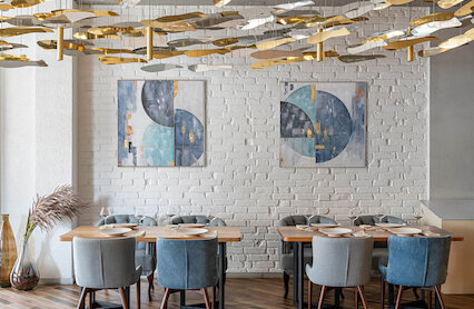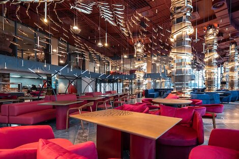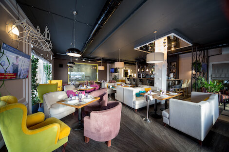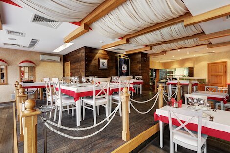 - Большой европейский ресторан с акцентом на рыбу и морепродукты при отеле Kravt в аэропорту Казань
