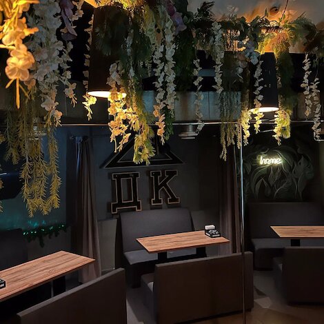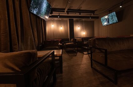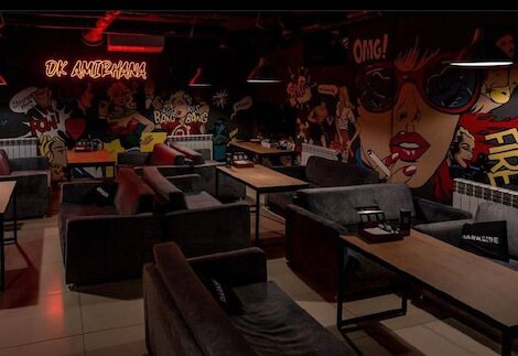 - Колоритная кальянная с большим экраном, настолками и разносторонней барной картой