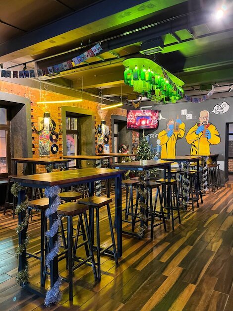 - Развеселый молодежный бар с пиццей, бургерами и разнообразным алкоголем