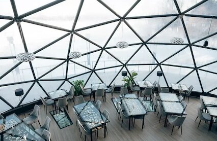 - Живописный ресторан-шатер на воде при загородном клубе «Утрау» на берегу Волги
