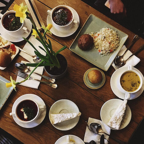 - Винтажное кафе-кондитерская с нарядными десертами и завтраками в старинном особняке