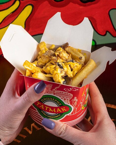 - Минималистичное кафе с собственной доставкой роллов, пиццы и популярного стритфуда