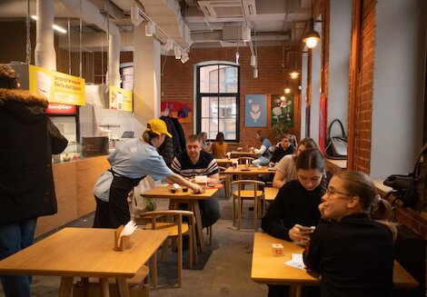 Зашли впервые, были очень приятно удивлены, атмосферное и уютное место, блины невероятно вкусные, брали жульен, бифбосс, вишневый штрудель и манго-абрикос. Девушки на кассе вежливые и приветливые, это очень расположило к себе. Будем теперь заходить чаще, очень советую данное заведение!!!