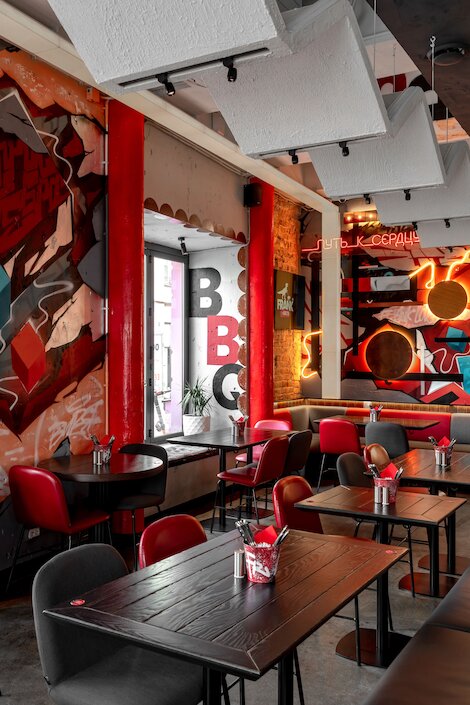 - Пресненская наб., 2, ТЦ «Афимолл», 5 этажСетевой ресторан-рёберная рэпера Басты в Сити