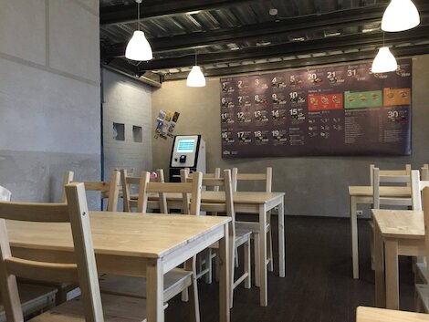 Лично мне место напоминает уличное японское ретро-кафе - очень заводная японская музыка, аутентичные высокие столы с перегородками, в общем - атмосфера)