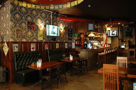 Ирландские пабы от компании Pub Moscow. В напитках упор сделали на крепком алкоголе: шотландский, японский, американский виски, текила, кальвадос, ром. Есть раздел с британским и ирландским пивом, сидром, коктейлями на драфте — напитками, которые наливают из пивных кранов. Дополнить заказ предлагают немецкими колбасами, мексиканскими буррито, итальянской пастой.