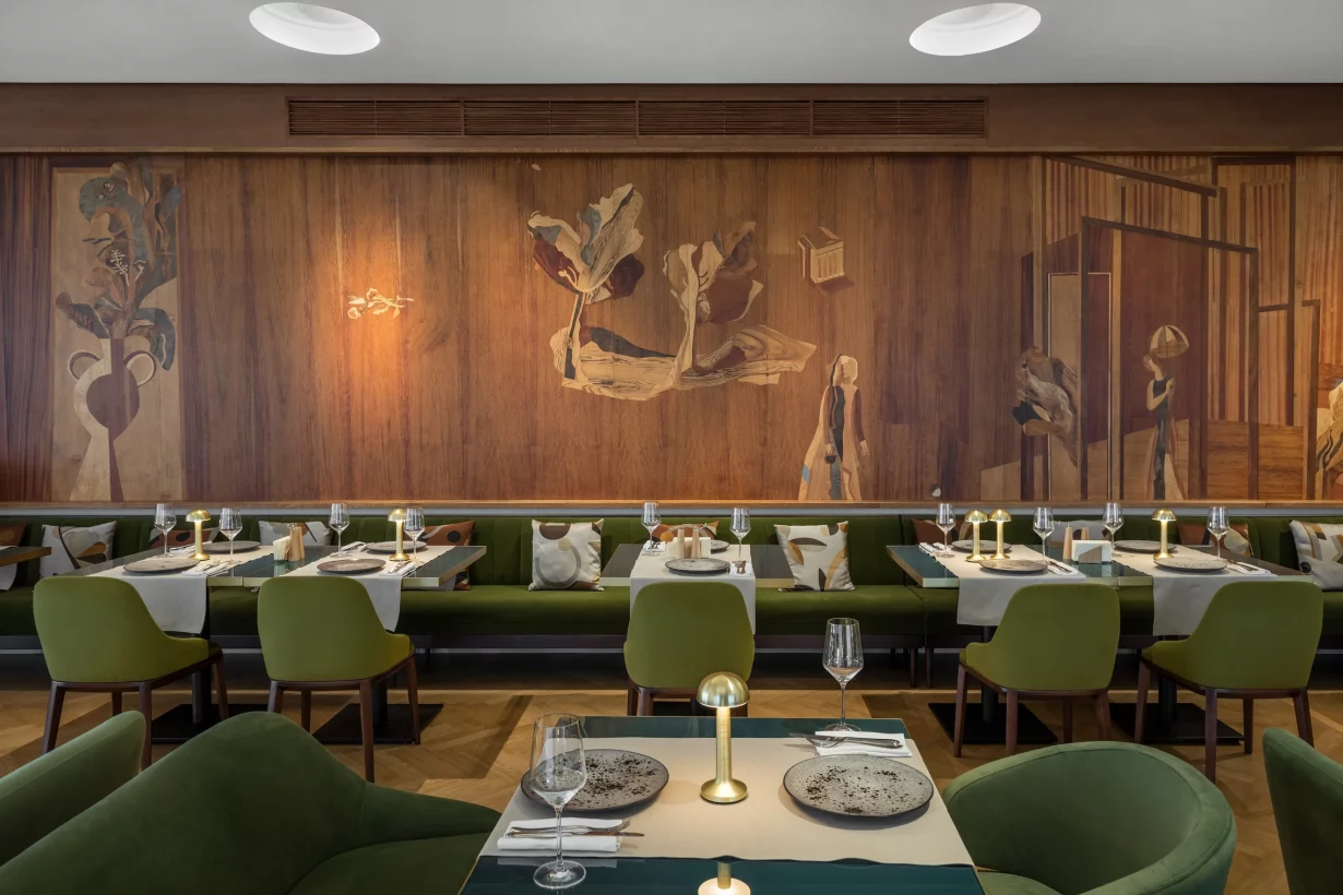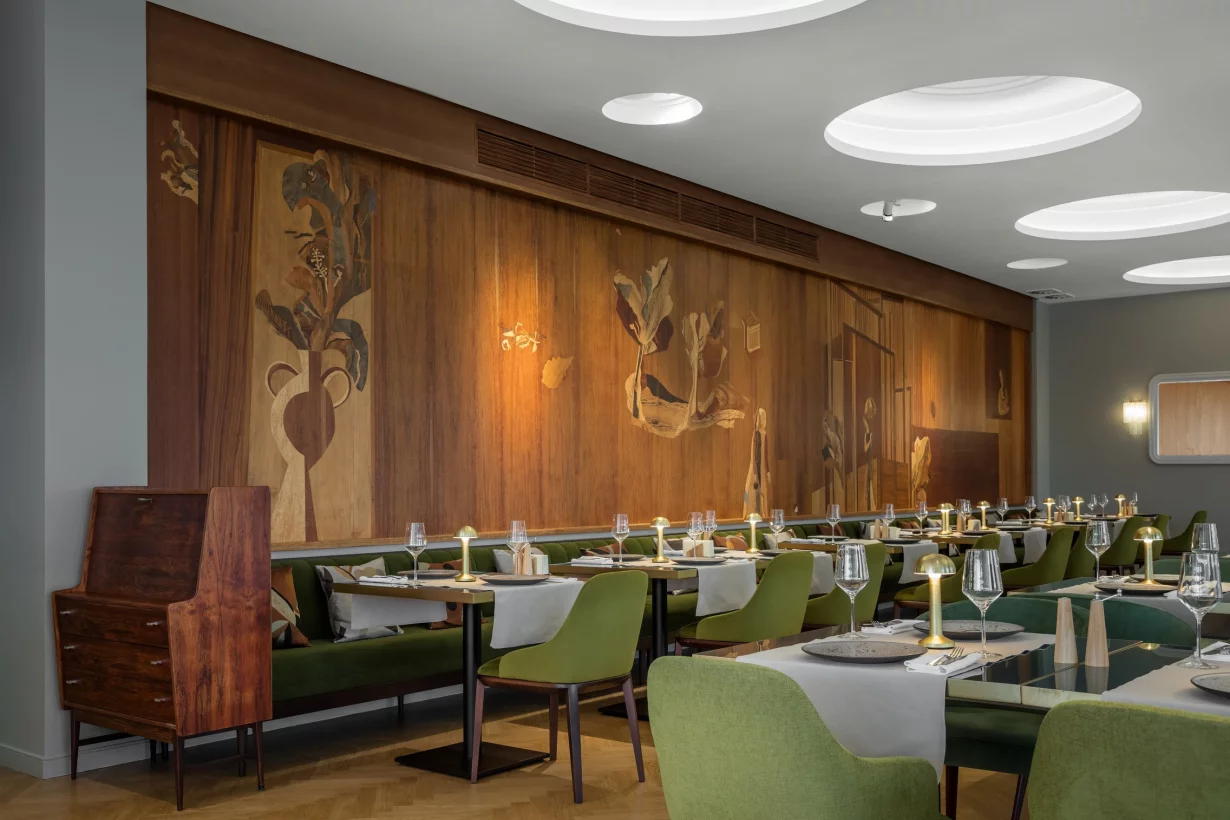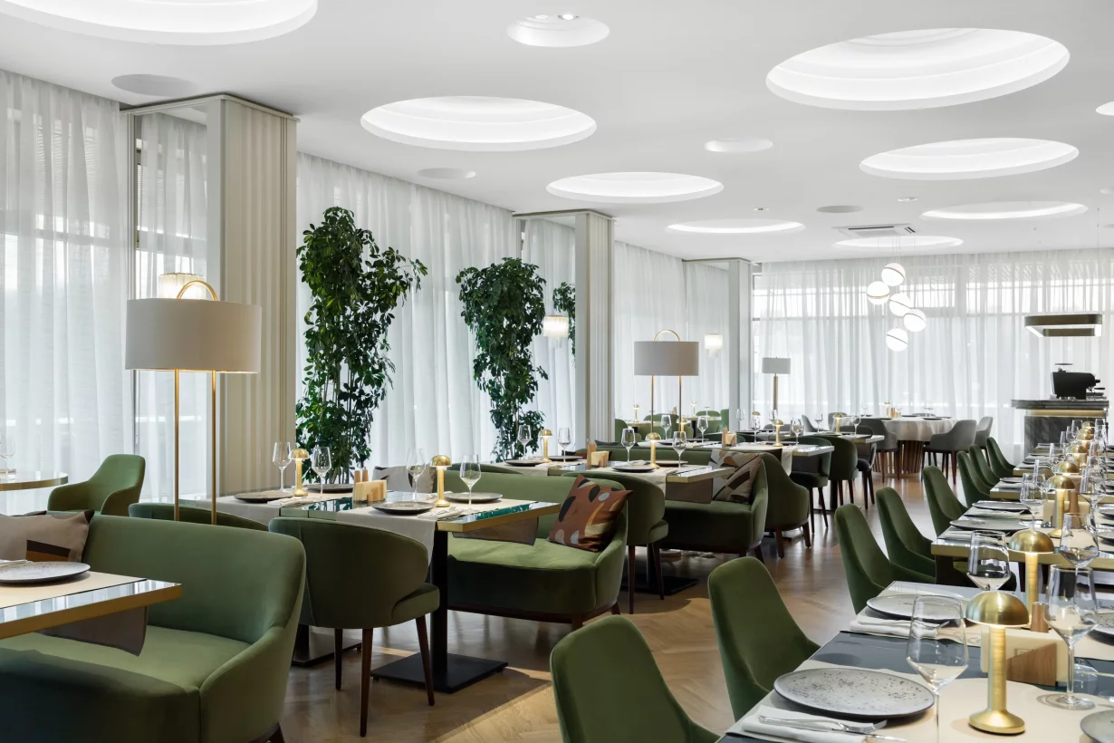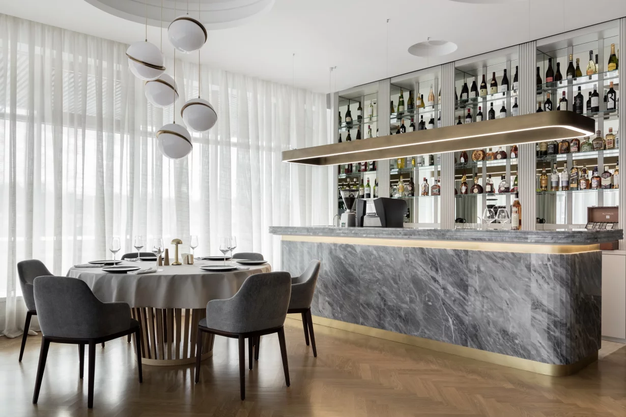 «Альфа» — банкетный зал и ресторан при одноименной гостинице на Измайловском шоссе. В одном проекте мы соединили просторные залы для праздников, рестораны и лобби-бар, уютные номера и сауну для гостей.