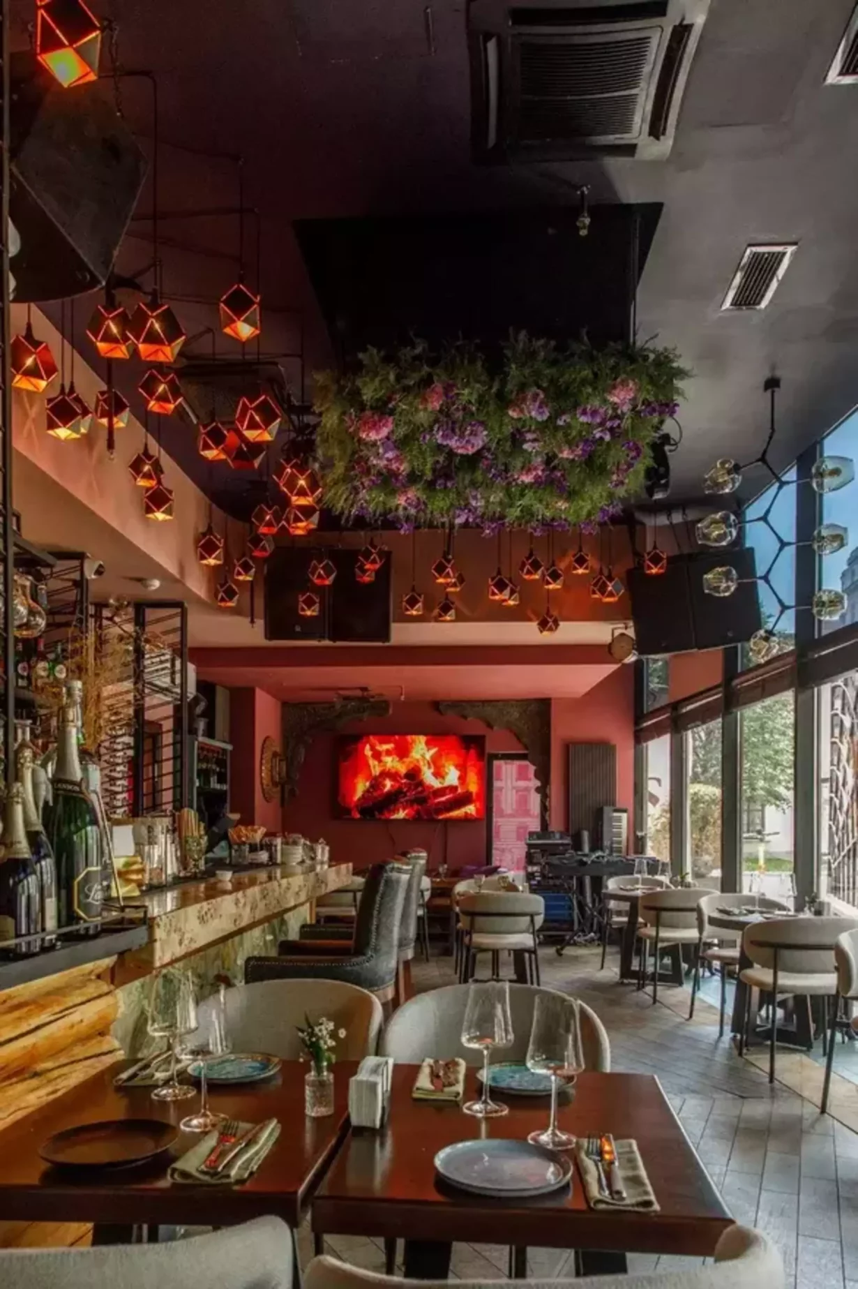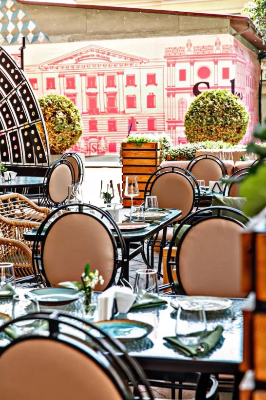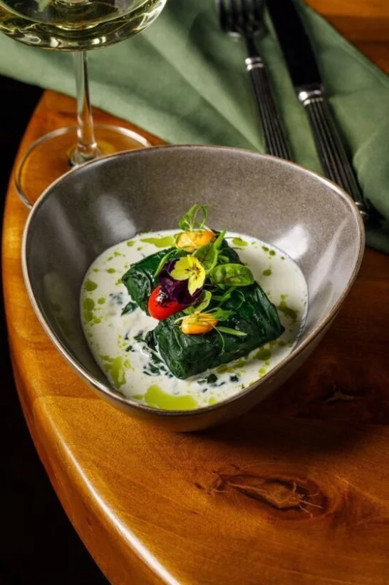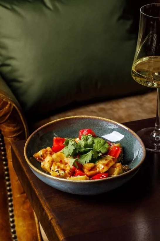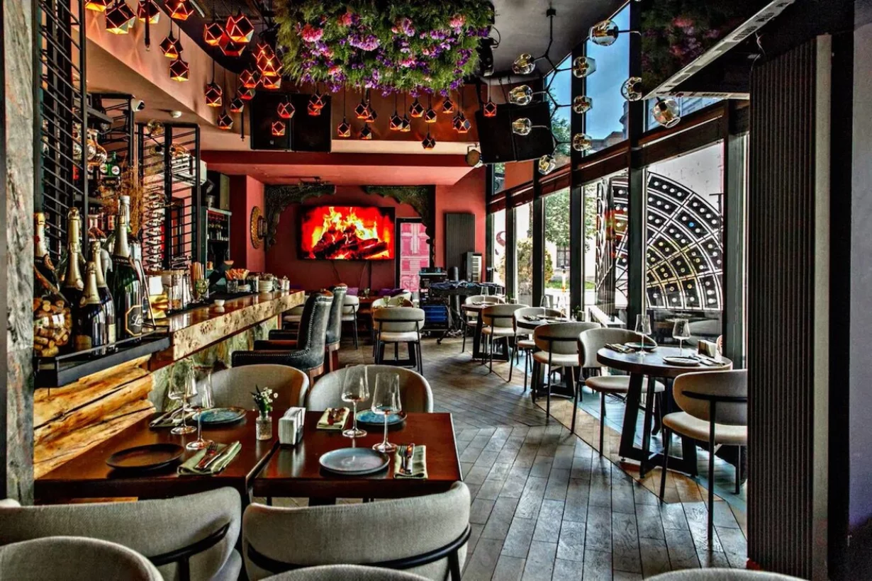 Высокий потолок, массивная мебель, обилие зелени и авторская кухня, которой подыгрывает винная карта. Таким получился вечерний ресторан Bodega.