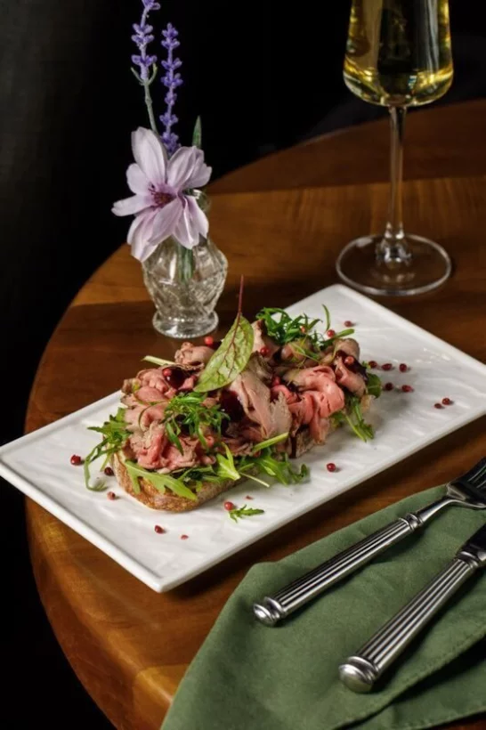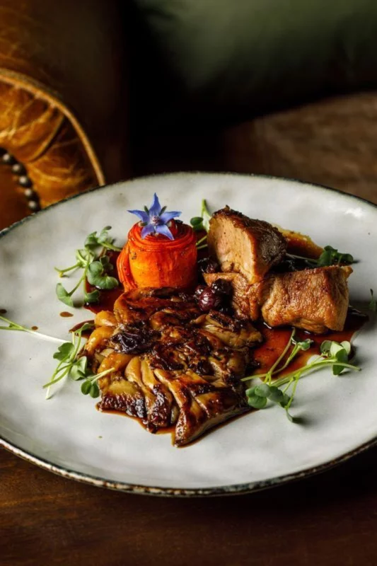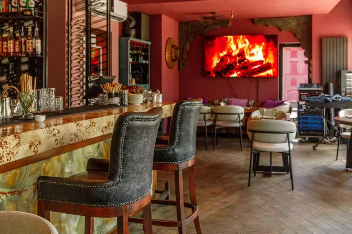 На кухне сами печем хлеб и коптим мясо, в интерьере много антиквариата, привезенного из разных стран, а на небольшой сцене обустроили место для вечеров с живой музыкой по выходным.