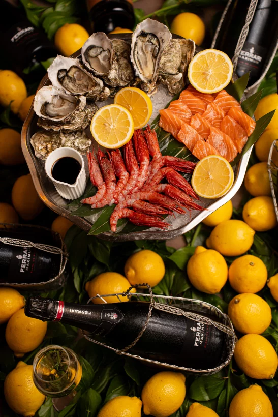«Гранде-бранч» с безлимитным Raw-баром действует так же с 12:00 до 16:00 (14 400 рублей за персону с винным сопровождением). Выбирать можно из свежих морепродуктов на льду, крудо, тартаров и сашими в сопровождении премиального вина, более десятка видов салатов и закусок, а также пасты и горячих блюд от шеф-повара.