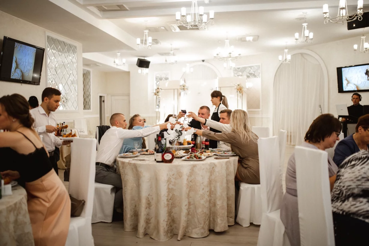 За 1,5 часа до начала торжества мы начинаем приглашать гостей в банкетный зал. Во время приветственной части мероприятия вы сможете угоститься бокалом игристого, сделать памятные фотографии у праздничной фотозоны с символом года и настроиться на потрясающий вечер!